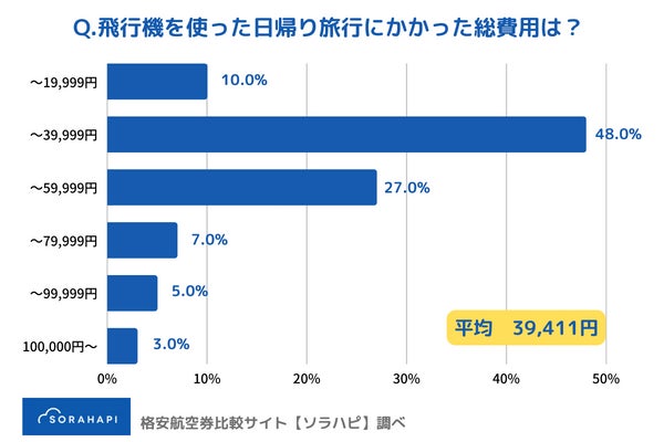 実際に今回の調査結果では、これらを活用して「2万円未満」で飛行機日帰り旅行を果たした回答者が10.0%存在しました。