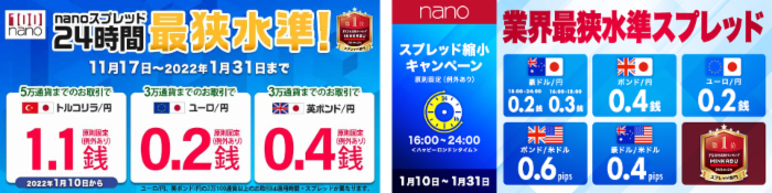 ※クリスマスを含む年末年始期間の取引参加者減少によるマーケットの流動性低下・急激なレート変動(ボラティリティの急上昇)の可能性から、本キャンペーンによるスプレッド縮小は2021年12月22日から2022年1月3日まで休止しておりました。
