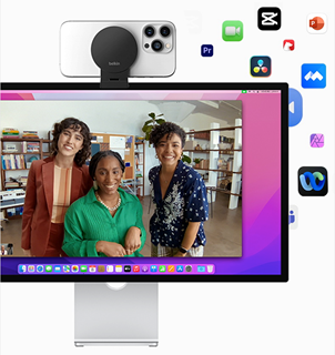 本製品は、Apple WWDC 2022にて「BelkinとAppleが共同開発中」と話題になったもう一つのMagSafe対応iPhoneカメラマウントであり、macOS Venturaの連携カメラ機能に最適化された製品です。Macノートパソコン用のMagSafe iPhoneマウントと異なり、Macデスクトップ及びディスプレイの上部に取り付け、または三脚に取り付けることができます。