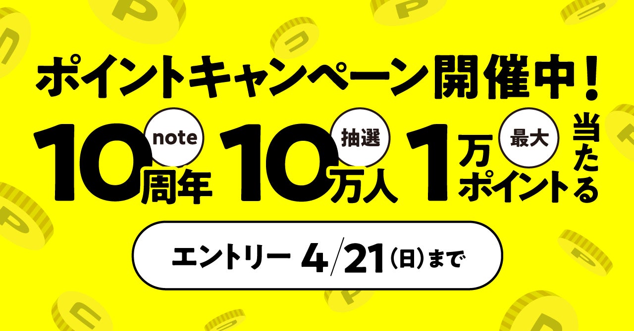 また、サービス開始10周年の感謝を込め、記事購入に利用できるnoteポイントが当たる、note10周年キャンペーンを本日から開始します。