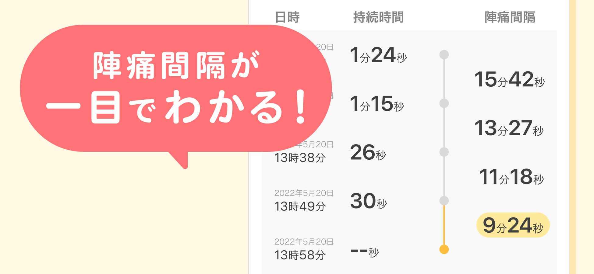ワンタップで陣痛間隔をカンタン計測!突然の陣痛で不安なママをサポート