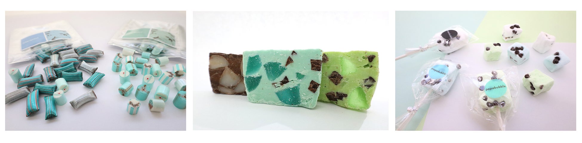 「世界一おもしろいお菓子屋さん」アート・キャンディ・ショップ「PAPABUBBLE/パパブブレ」は、大丸東京店(東京都中央区)、名駅店(名古屋市)、ルクア大阪店(大阪市)の3店舗を期間限定のチョコミントショップとして、ゴールデンウイークが始まる4月28日よりオープン。海外メディアからも取材される人気のチョコミントを33種類ご用意。お店をチョコミントカラーで埋め尽くします。