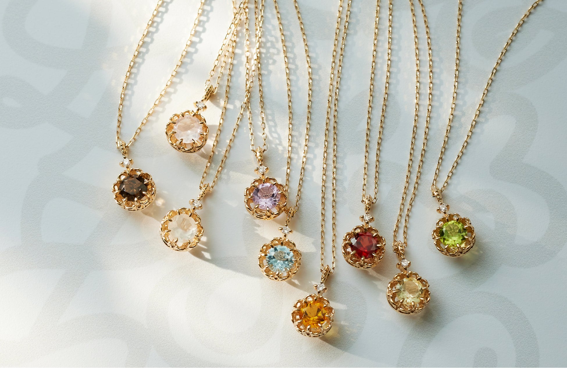 それぞれの運命数が導くラッキーカラーの天然石が主役のネックレス。