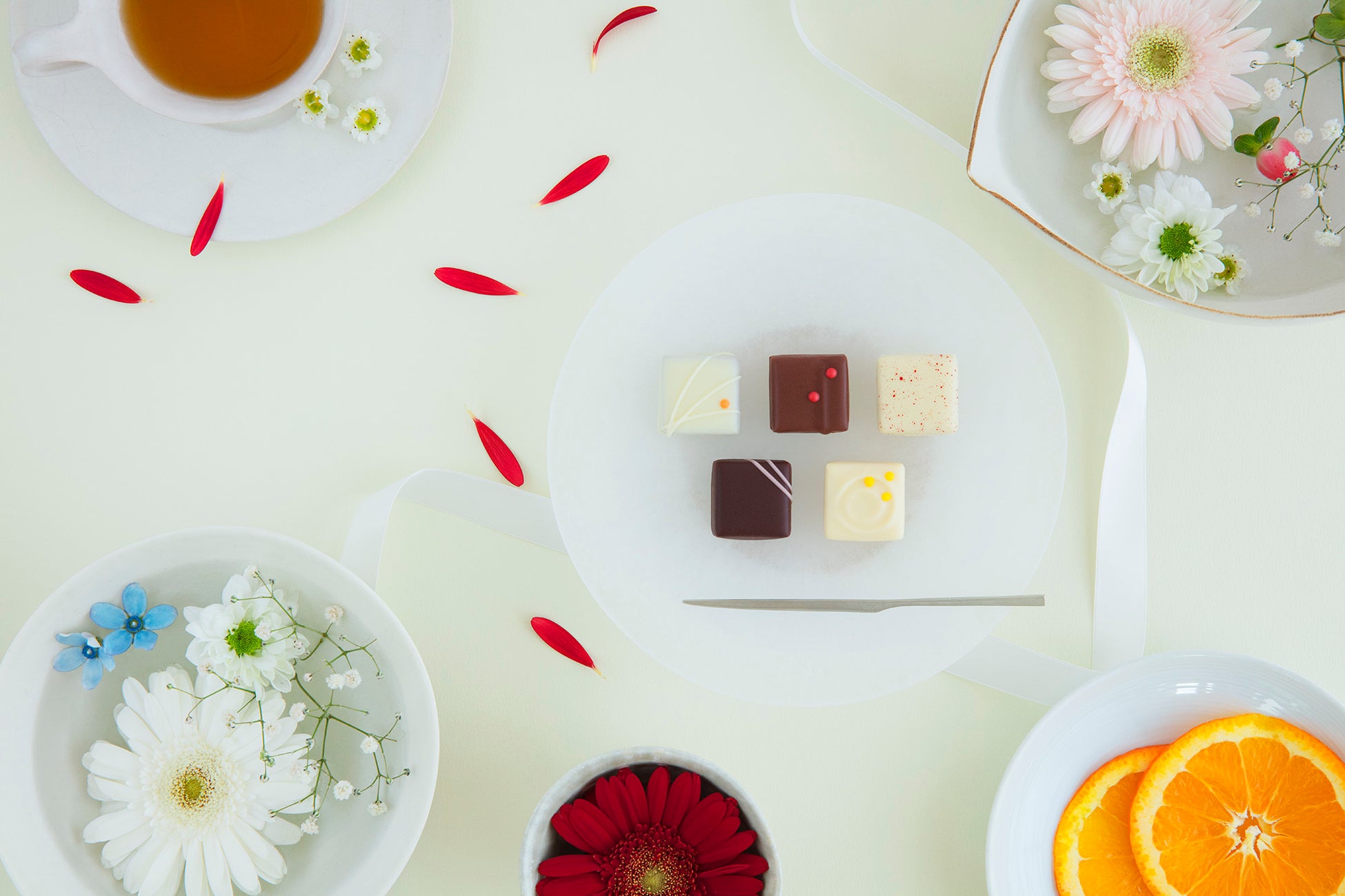 2016年に「日本の季節、八芳園の四季を持ち帰っていただきたい」という想いで誕生した「kiki-季季-」。日本各地の生産地に実際に足を運んで厳選したこだわり素材で、四季の味覚を大切に詰め込んだ「ボンボンショコラ」からはじまりました。「きせつ、めぐり、であう。」というコンセプトのもと、日本ならではの四季折々の趣きを和のチョコレートで表現しています。