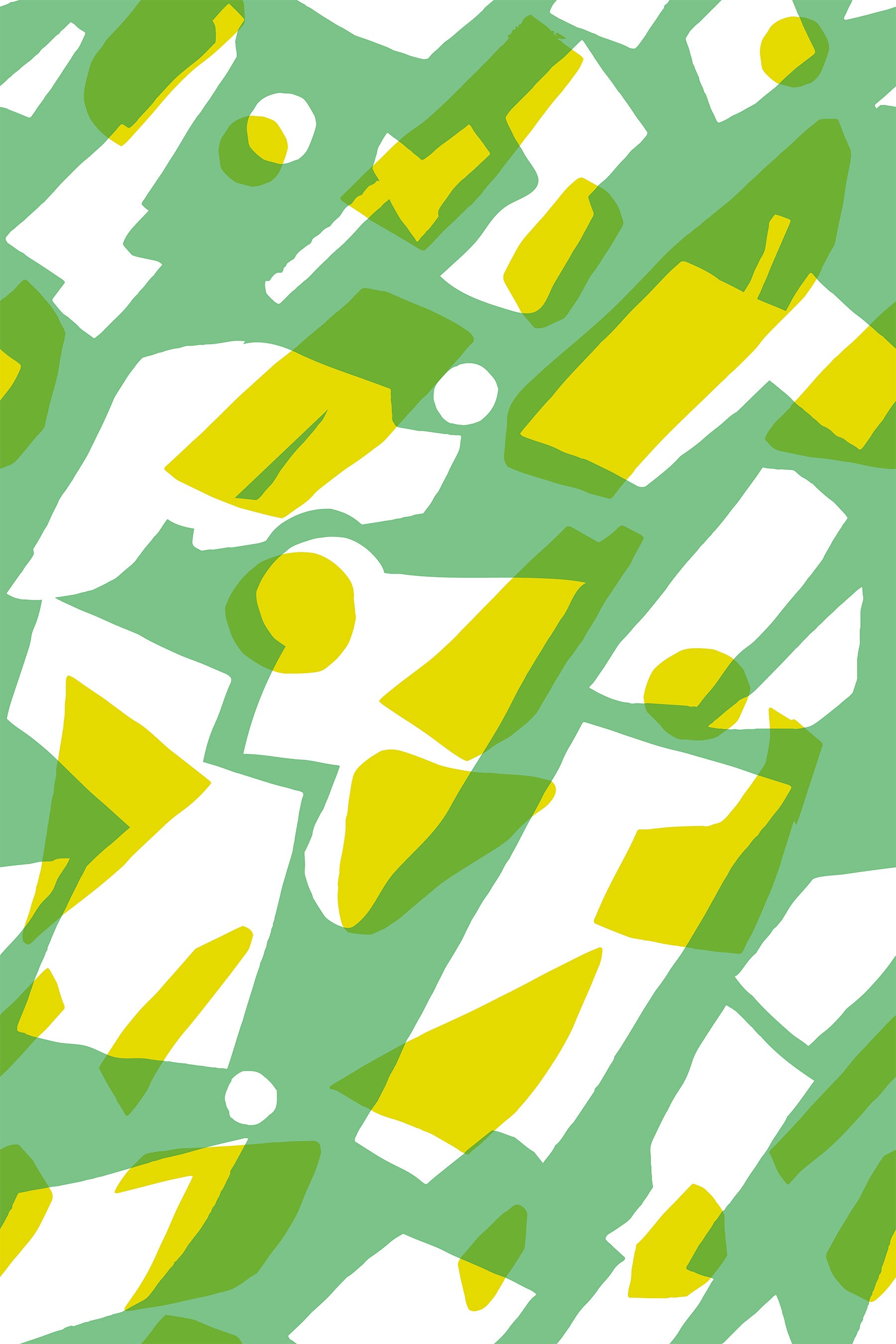 紙を切ってそれぞれの要素のレイアウトを実際のスケール感で試行錯誤しながら、テキスタイルデザイナーとしても活動する同氏の絶妙な配置と抽象表現により今回のデザインが生まれました。