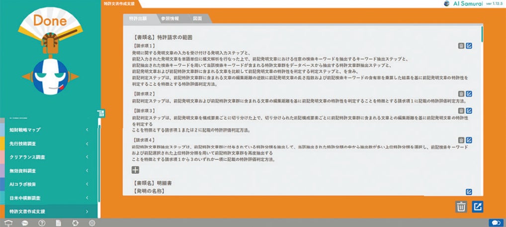 株式会社AI Samurai(エーアイサムライ、本社:東京都千代田区、代表取締役:白坂一)は新機能である「AI特許作成」をリリースしました。同機能は、発明の内容とそれに類似するいくつかの既存特許の情報を与えることで、数分で特許書類のドラフトを作成する機能です。この機能について、弁理士法に抵触しないかという確認を「グレーゾーン解消制度」を活用し、経済産業省に問い合わせ、その回答が公表されました。