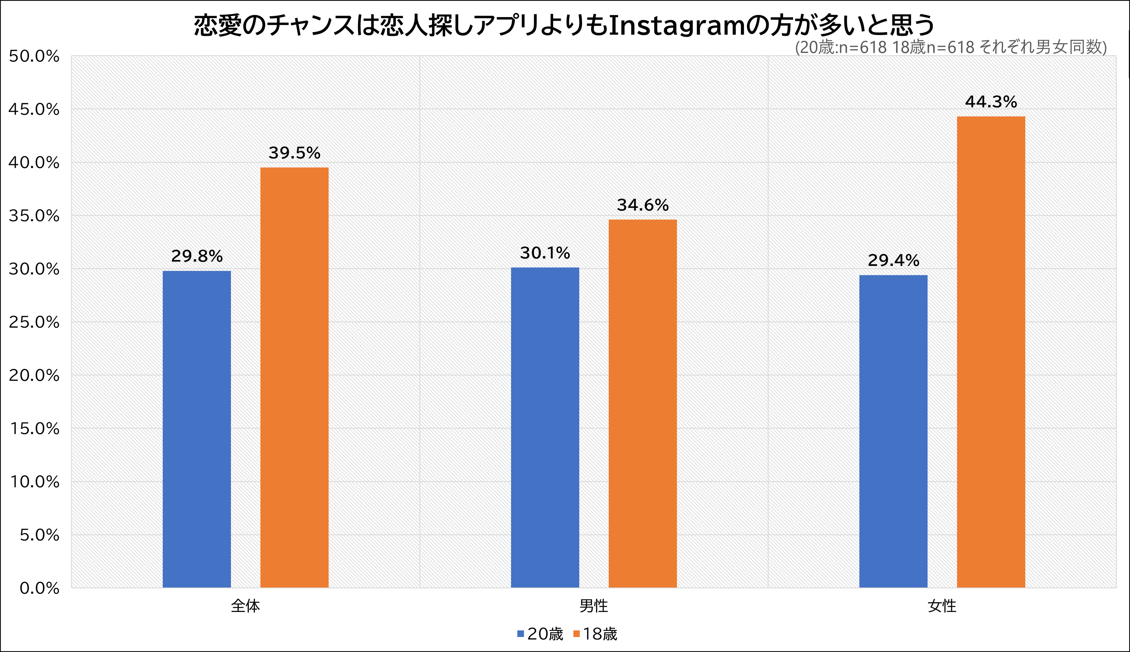 1.「恋愛のチャンスは恋人探しアプリよりもInstagramのほうが多いと思う?」
