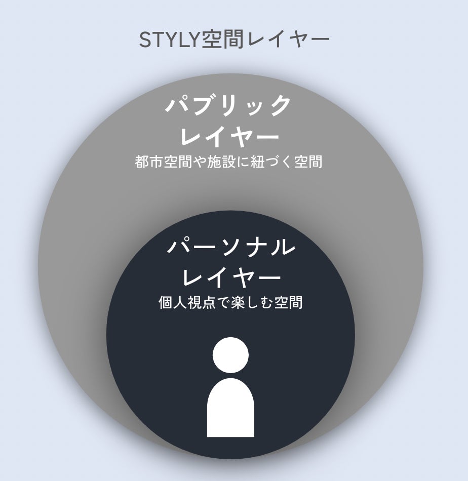 STYLYには、現実の都市空間や商業施設とに紐づく「パブリックレイヤー」と、個人視点で楽しむ「パーソナルレイヤー」があります。