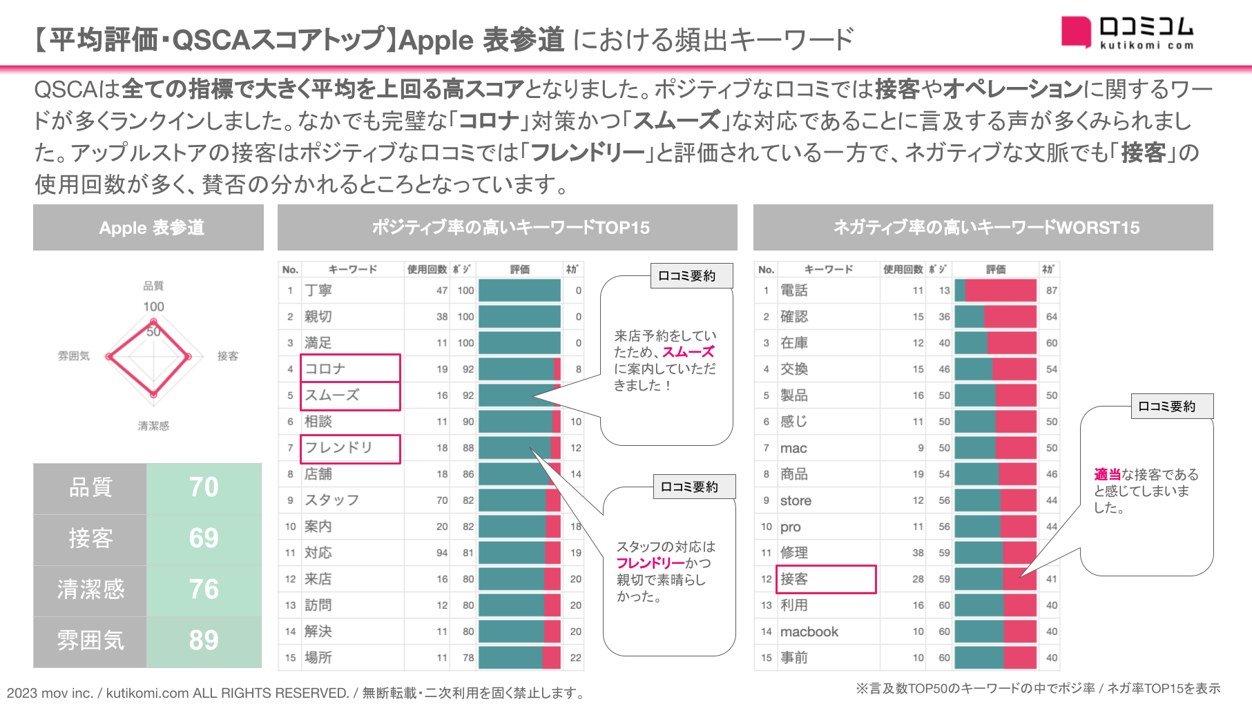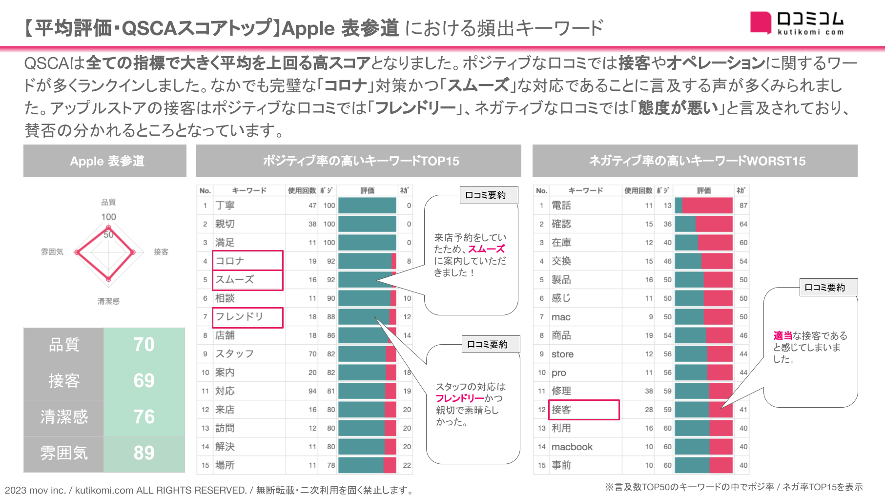 となりました。ポジティブな口コミでは接客
