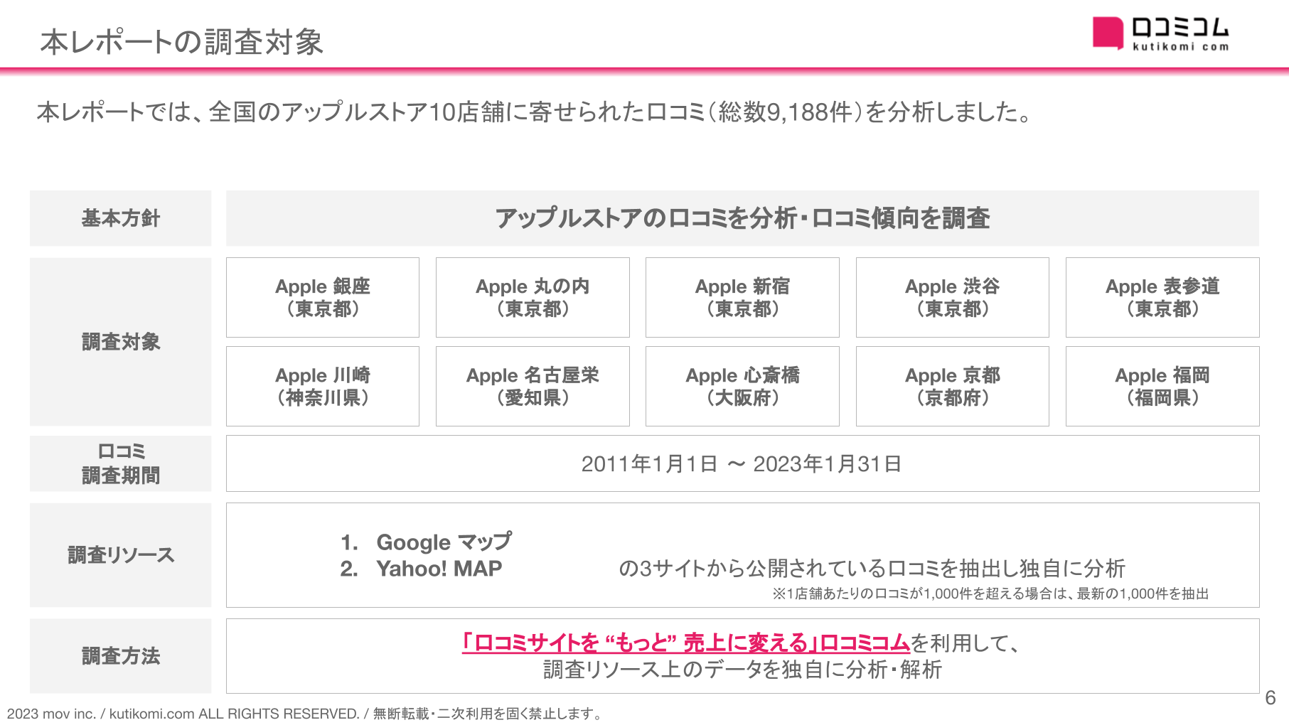 今回は、アップルストア全10店舗に寄せられた約1万件の口コミを調査、比較検証をしました。