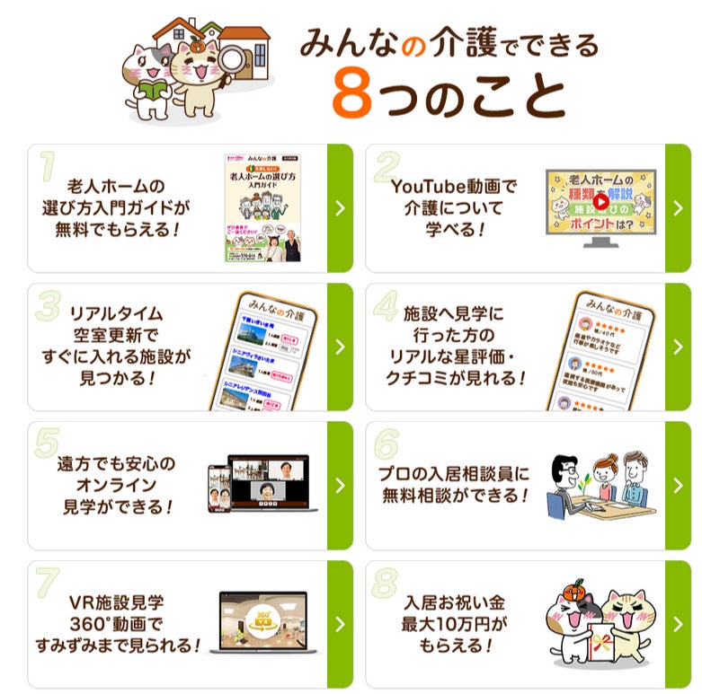 福利厚生倶楽部では「介護相談AIチャットボット」開始に先駆け、2024年6月から全国58,000件以上の老人ホーム情報を掲載する「みんなの介護」と提携を開始し、会員の皆さまをサポートしております。