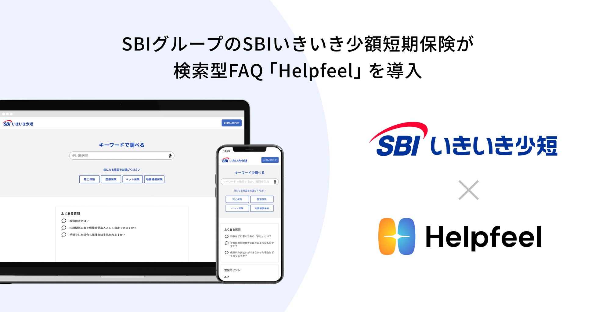SBIグループのSBIいきいき少額短期保険が検索型FAQ「Helpfeel」を導入