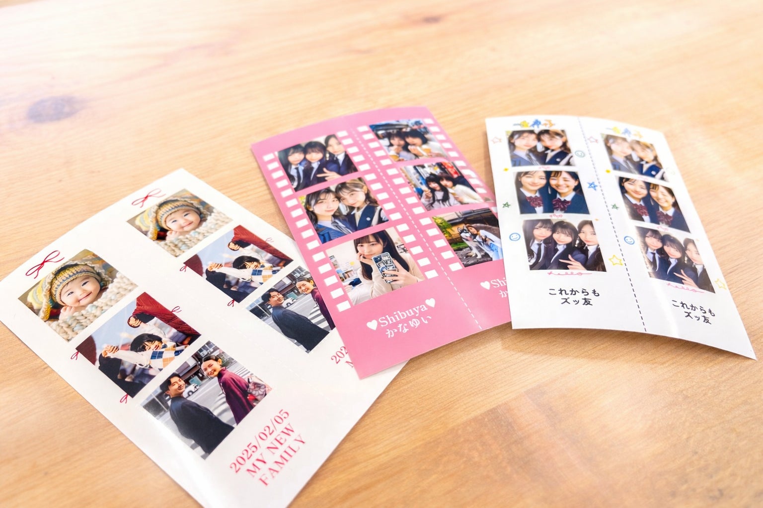 スマホケースに挟んだり、バッグに入れたり、友達と見せ合ったりと、日常の中で思い出を共有できます。「見せる」「整理する」「集める」そんな写真コミュニケーションを、より楽しくする体験が詰まっています。