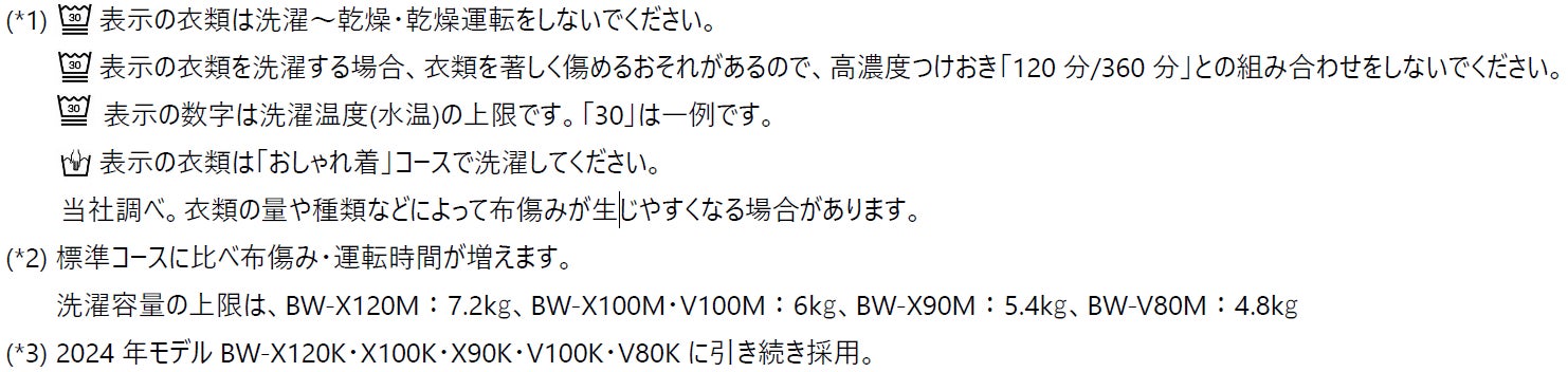 新製品の主な特⾧<全自動洗濯機「ビートウォッシュ」BW-X120M・X100M・X90M・V100M・V80M>