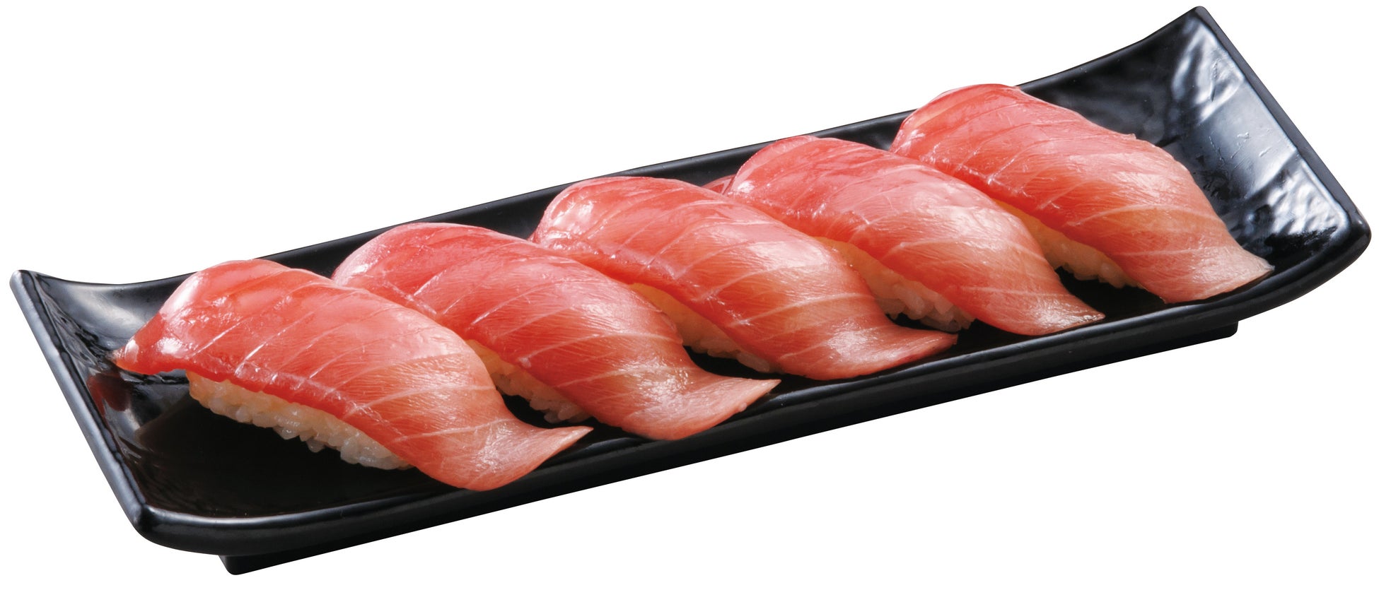まぐろ、いか、びんちょうまぐろ天身、えんがわ、蒸し海老ランプフィッシュキャビアのせ、赤海老、サーモン、いくら、ねぎとろ、ローストビーフランプフィッシュキャビアのせ(北海道産牛肉使用・直火焼き)、厚焼き玉子