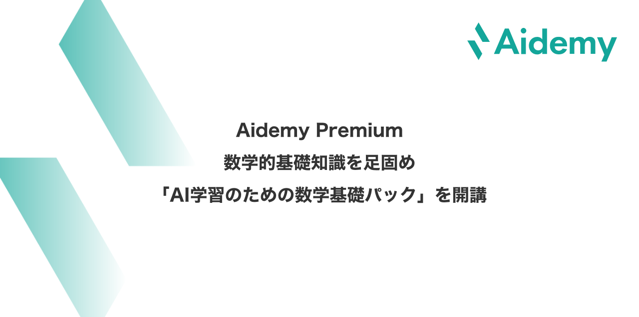 そこでAidemy Premiumでは、本来目的としているAI学習を深く学ぶことができるよう事前学習教材として「AI学習のための数学基礎パック」を開講いたします。AI学習スタート前に数学的知識を習得することで、受講期間中の学習を円滑かつ効率的に進めることを狙いとしています。