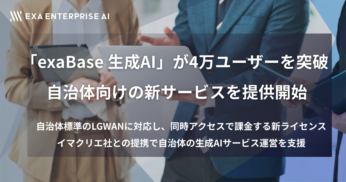 「exaBase 生成AI」が4万ユーザーを突破、自治体向けの新サービスを提供開始