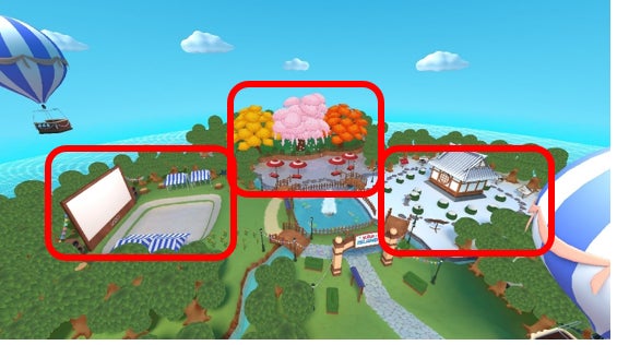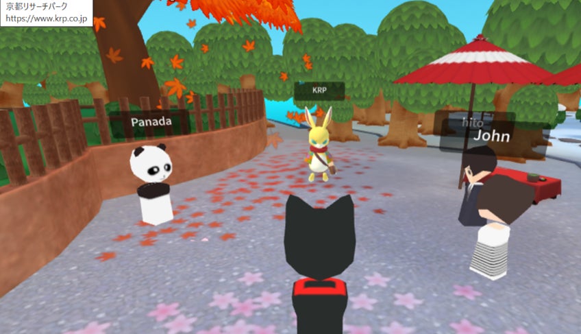 KRPは、収容人数最大350名、大小様々な全30室のホール・会議室を貸し出しており、研究開発型企業や京都府・京都市の産業支援機関が集積する新産業創出拠点として、世界中のイノベーションを起こそうとする方々に魅力的な交流の場を提供しています。これまでのリアル空間での交流の場にくわえて、仮想空間上でも人々が集まり交流できる場を提供すべく、セミナーや展示、交流ができる「KRP ISLAND※1」を制作しました。「KRP ISLAND」は、四季をモチーフに、夏をイメージしたセミナーエリア、春・秋をイメージしたブレイクエリア、冬をイメージした展示エリアの3つのエリアから構築され、アバターを使って空間内を自由に散策できます。