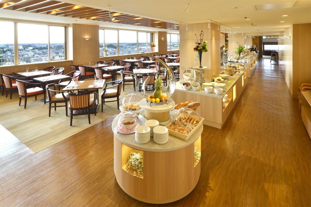 最上階レストラン(12階)「ロチェスター」にてビュッフェ形式にてご用意いたしております。