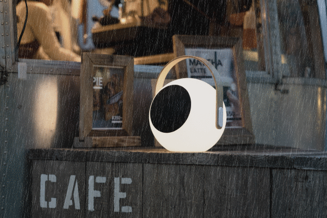 「ワイヤレス&防水(防滴)」なので多少の雨でも大丈夫。カフェのテラスや、ケータリングカーで使っても、おしゃれ度UP。(防滴構造IP44)