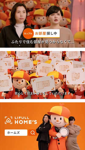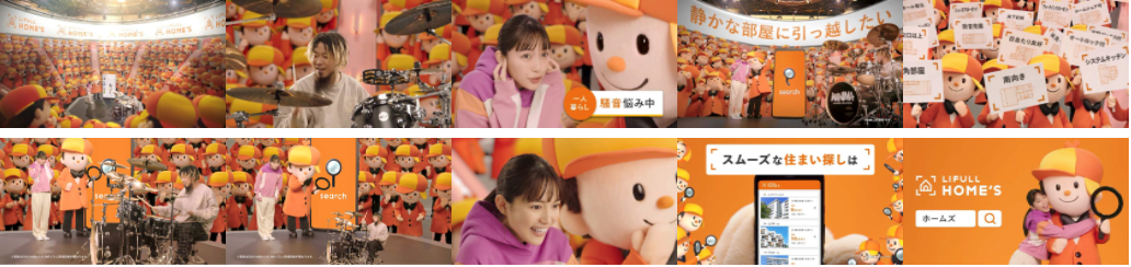 - 住まい探しの「課題」にフォーカス。大量分身のホームズくんで一人ひとりに寄り添い、スムーズな住まい探しを叶えられるLIFULL HOME'Sの強みを表現!