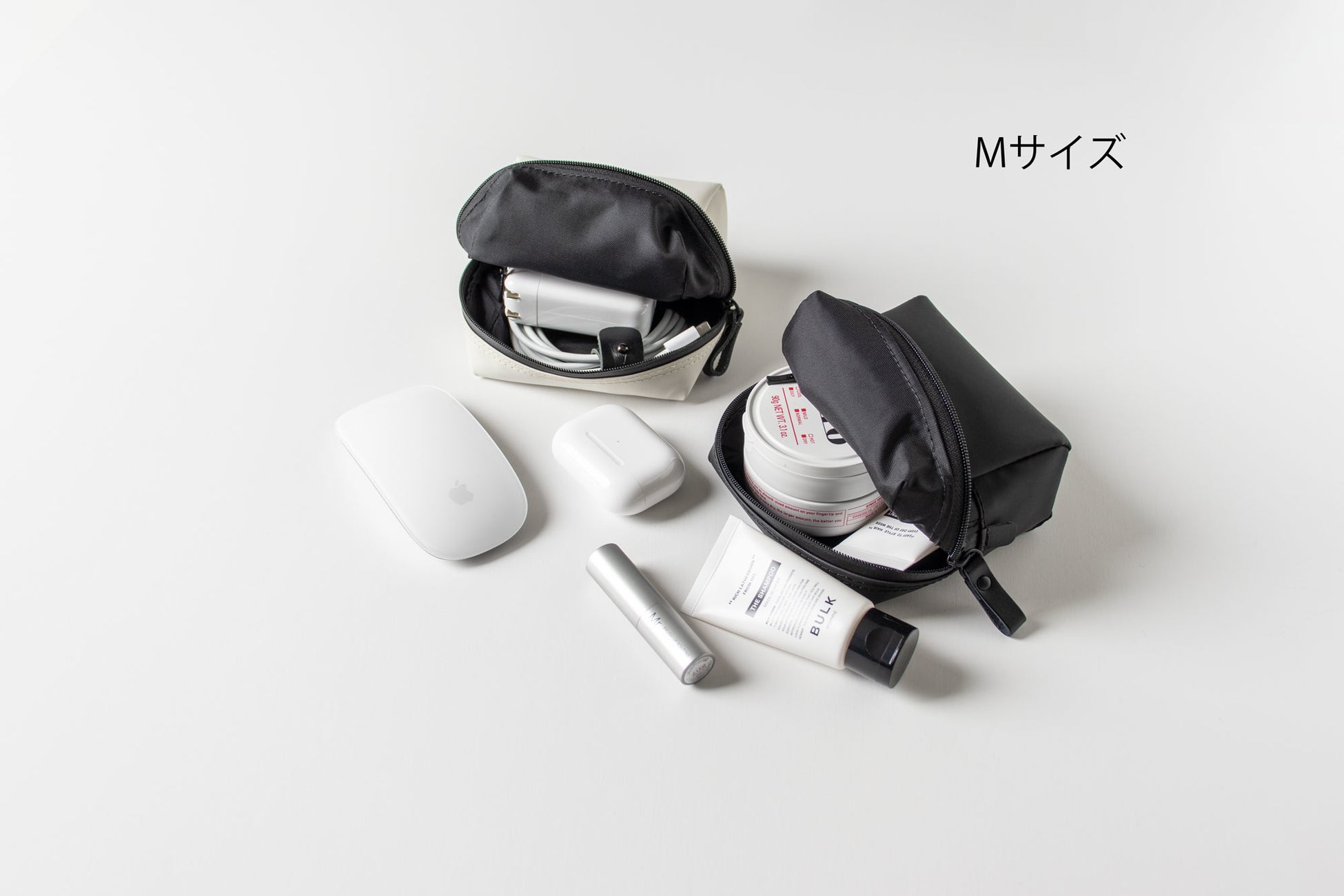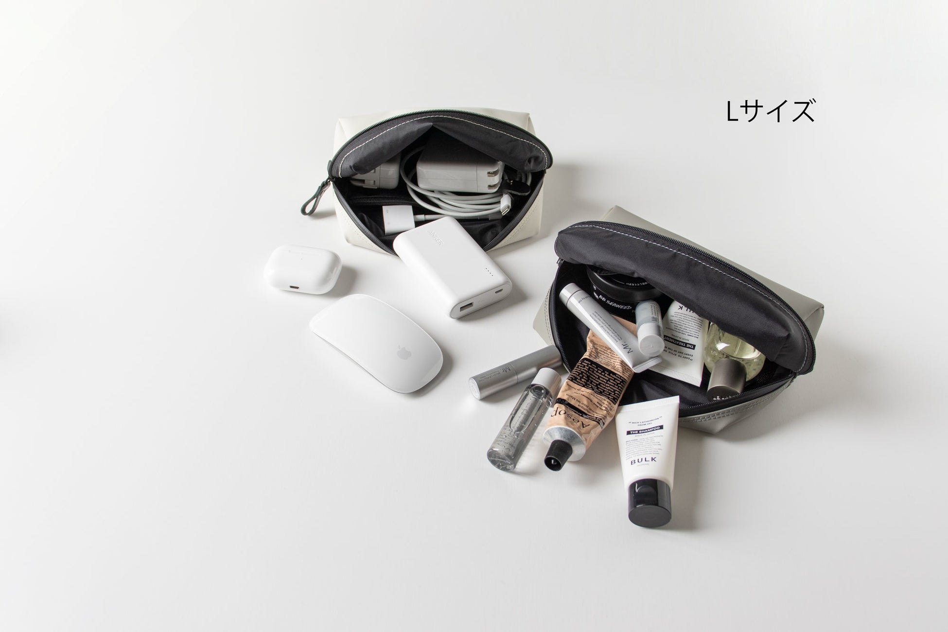 ガジェットからスキンケアまでマルチに収納できるポーチ。MとLの2サイズございます。