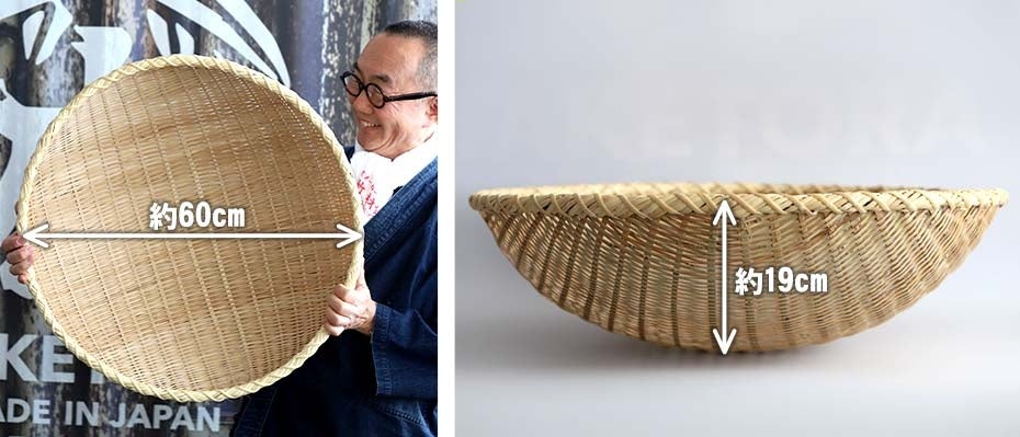 竹の深みと職人技が光る、見た目も美しい深型竹ざる(亀ざる)の小(40cm)と特大(60cm)が新発売。籐巻仕上げで実用性と耐久性を兼ね備え、アイデア次第で多用途にご活用いただけます。