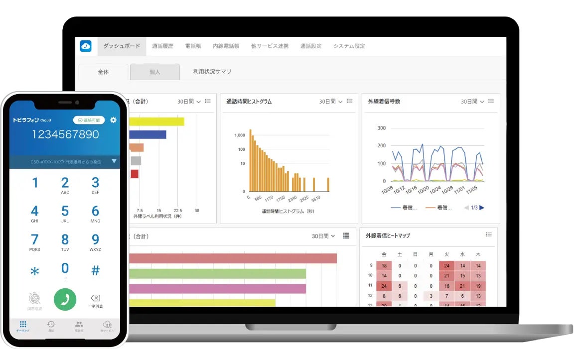 「トビラフォン Cloud」は、機器設置や工事が不要で使えるクラウド型ビジネスフォンです。スマホアプリやPC、IP電話機等のマルチデバイスに対応しており、働き方に合わせた電話環境を実現します。