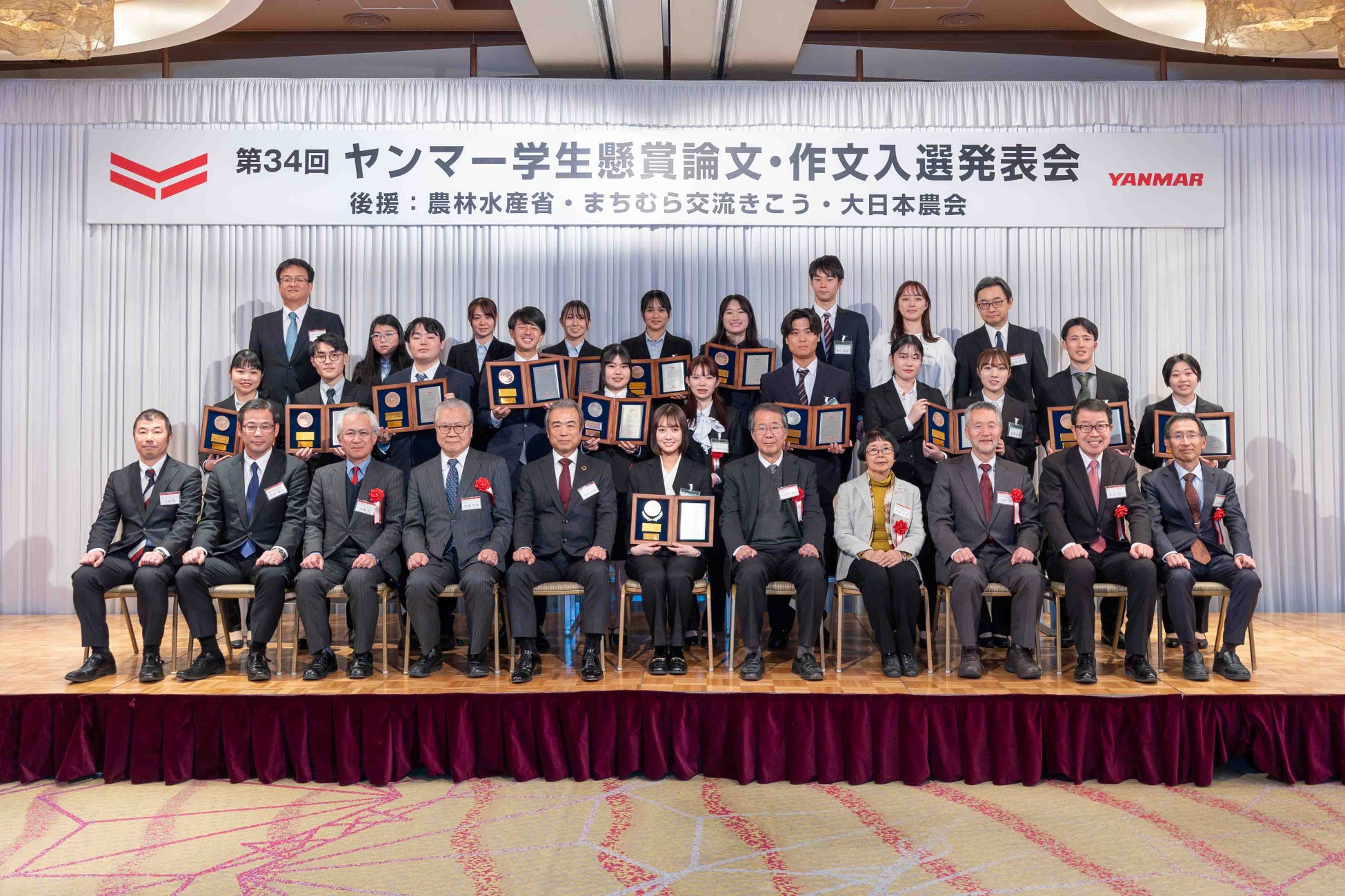 ヤンマーホールディングスのグループ会社であるヤンマーアグリ株式会社(本社:岡山県岡山市、社長:増田長盛、以下ヤンマーAG)は、2月9日(金)、「第34回ヤンマー学生懸賞論文・作文入選発表会」を4年ぶりに対面開催し、優秀作品として論文13編(大賞、特別優秀賞、優秀賞)、作文13編(金賞、銀賞、銅賞)を決定、表彰しました。