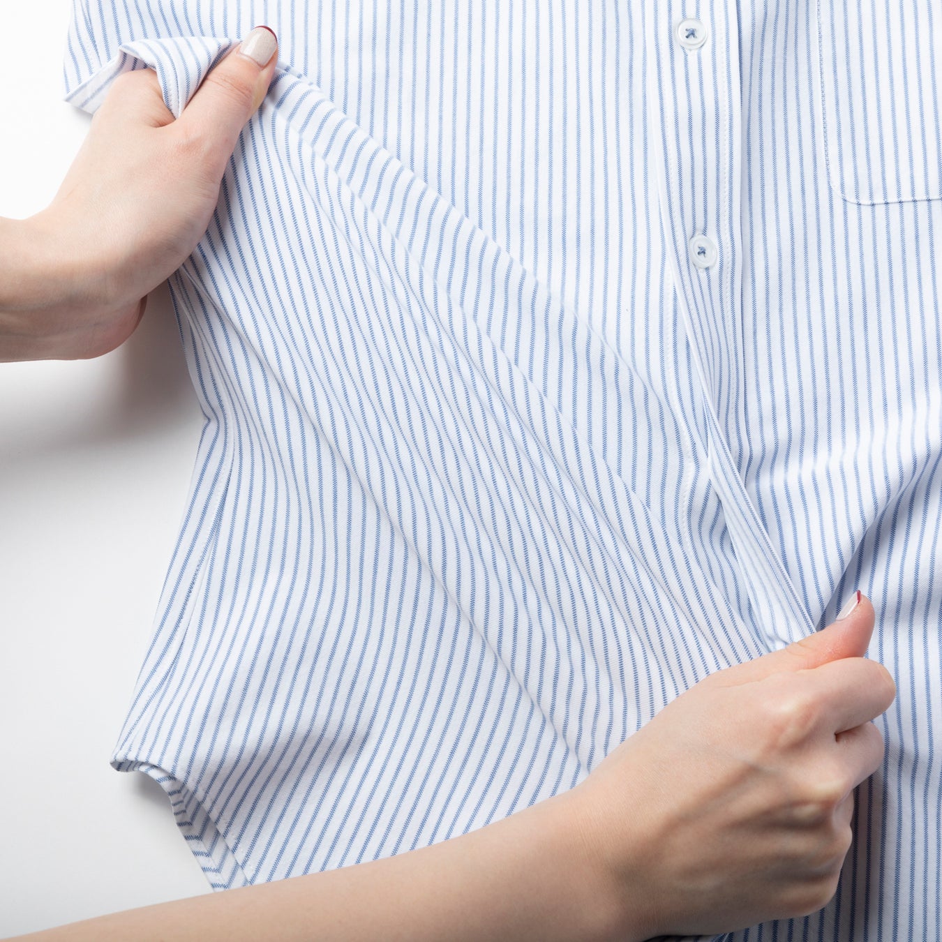 同商品は、ストレッチ、しわになりにくいイージーケア、吸水速乾やUVカット、自宅洗濯機で丸洗い可能などの高機能性を備えながら、柔らかくなめらかな肌触りを実現するため、2年もの期間をかけて開発した自社オリジナル素材「ultimex for SHIRT/アルティメックスフォーシャツ」を使用しています。同素材はポリエステルと綿で構成し、表面裏面で繊維の配合を変えることで、表面は柔らかい肌触りに、裏面は肌着のようななめらかさを追求しました。さらに、ストレッチ性のある糸を使用し、よりストレッチが効く編み方にしているため、着用時に突っ張りのない360度ストレッチを実現。吸水速乾に優れ、汗をかきやすい季節でもすぐに乾き、汗によるべたつきを解消します。またしわになりにくい素材を使うだけでなく、製品の段階でもしわになりにくい加工を加えているため、メルマガ男性会員へのアンケート結果にもある“アイロンがけが面倒”という不満点を解決いたします。