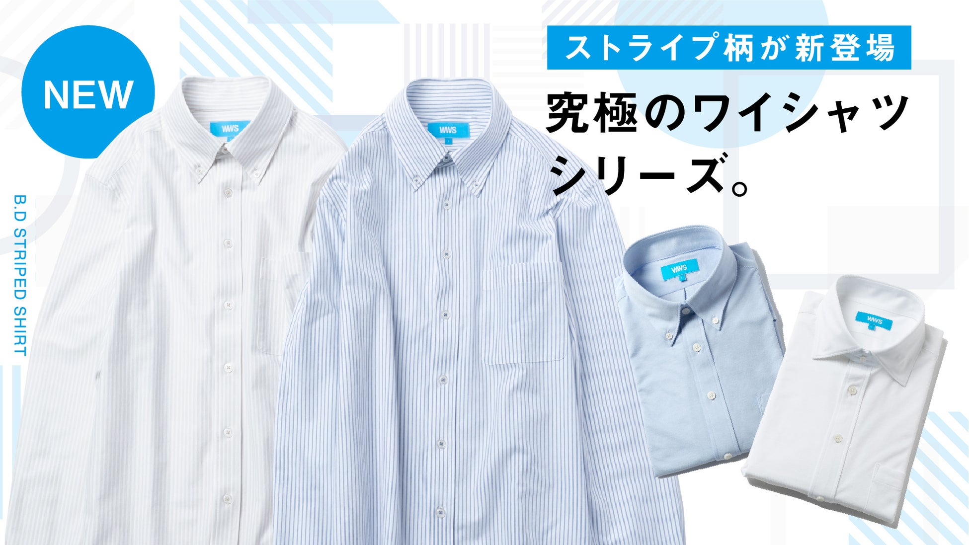 作業着スーツ発祥のボーダレスウェアブランド「WWS」。4月6日(水)から大人気商品「究極のボタンダウンシャツ」より新色・ストライプが新登場!