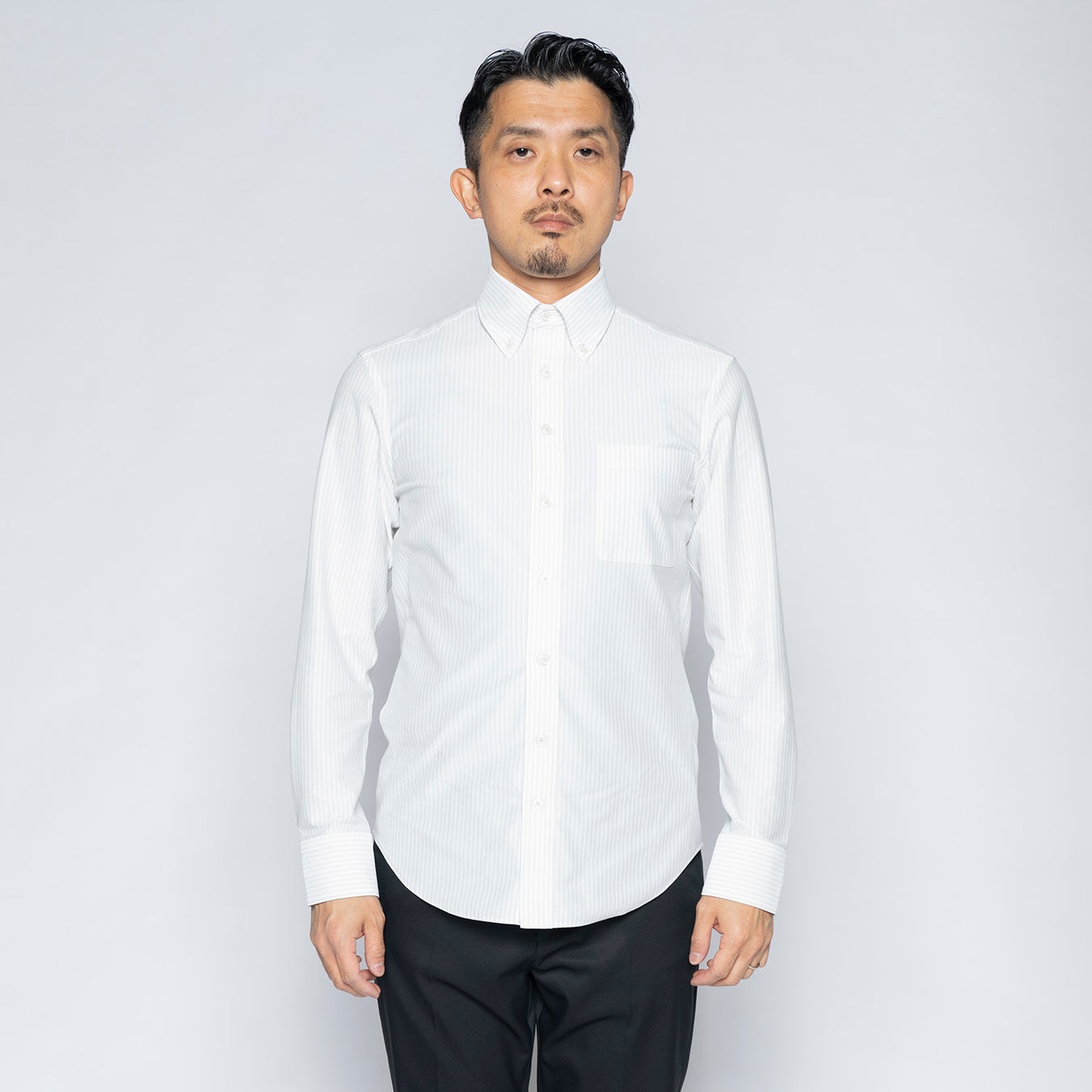 この度、2022年4月6日(水)より360度方向にストレッチが効き、しわになりにくい“究極のワイシャツ”シリーズから、「究極のボタンダウンシャツ」の新色2色、ストライプ・サックスとストライプ・ベージュを発売いたします。発売に先駆け、2月25日(金)よりWWS公式オンラインストアにて先行予約販売を行います。 “究極のワイシャツ”は数多くのお客様から、ビジネスシーンでWWSセットアップに合わせられるワイシャツを求める声をもとに開発。販売開始わずか数時間で初回生産分がほぼ完売するほどの大人気商品です。