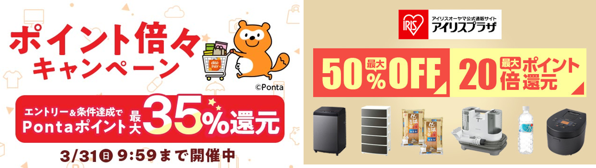 ※アイリスプラザの特典のみ2024年3月23日午前0時から3月31日午後11時59分までとなります。