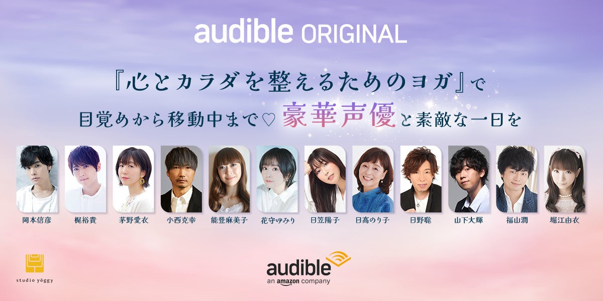 世界最大級のオーディオブックおよび音声コンテンツ制作・配信サービスであるAmazonオーディブル(以下、Audible)は、2023年の締めくくりとして、豪華な声優陣のナレーションで『心とカラダを整えるためのヨガ』を12月15日に配信することを決定しました。2023年3月に配信開始されたポッドキャスト『寝たまんまヨガ 優しい眠りの瞑想』は、お気に入りの声優さんの声で瞑想ができるという点で好評を博しました。今回の第二弾『心とカラダを整えるためのヨガ』では、起きづらい寒い朝でも推しの声で1日の活力をもらえるような『目覚めのヨガ』と、人の多い年末年始の帰省の移動中でも癒しの時間を楽しめる『移動中のこっそりヨガ』の2パターンを収録。心地よいヨガを楽しませてくれる声優陣は、岡本信彦さん ・梶裕貴さん・茅野愛衣さん・小西克幸さん・能登麻美子さん・花守ゆみりさん・日笠陽子さん ・日髙のり子さん ・日野聡さん・福山潤さん・堀江由衣さん ・山下大輝さんです。