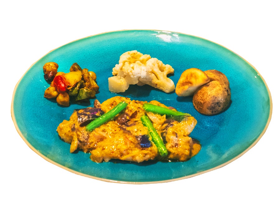完全紹介制レストラン「No Code」のオーナーシェフ米澤氏自ら配合したスパイスが決め手のレッドカレー。