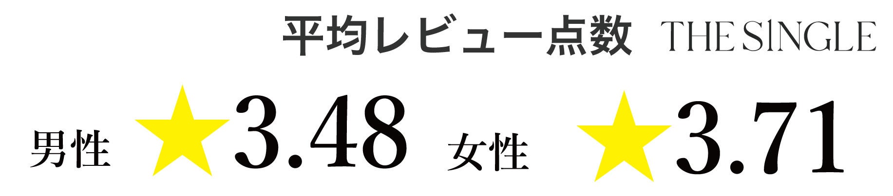 2024年8月のTHE SINGLEの平均レビュー点数は男性は3.48、女性は3.71となりました。