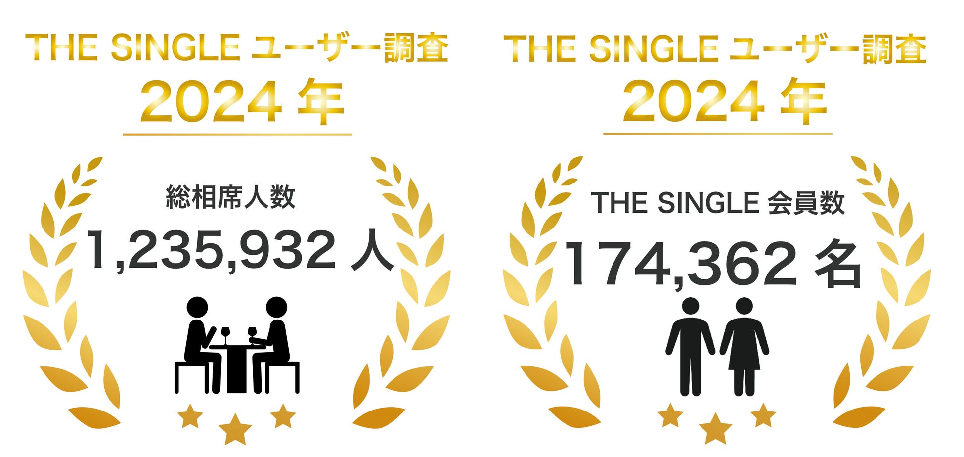 2024年度7月のTHE SINGLEは、THE SINGLE会員数174,362人、総相席人数1,235,932人を突破いたしました。(※総相席人数:2021年度〜2024年8月までの合計数)