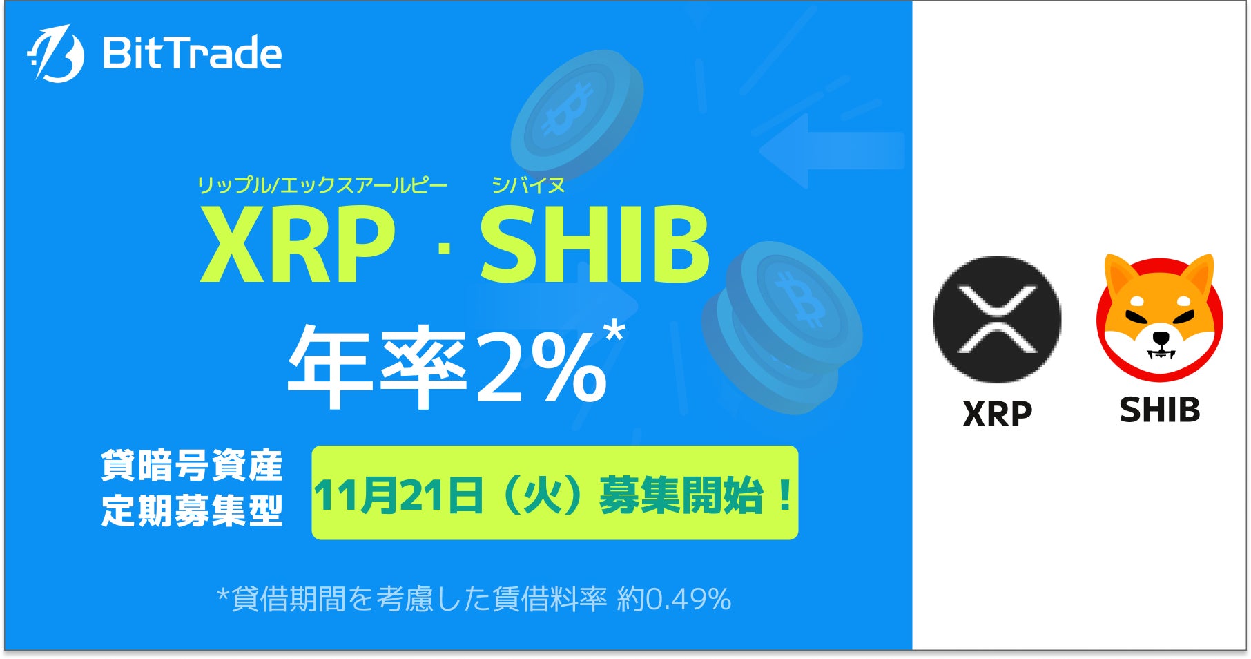 暗号資産ならビットトレード:【貸して増やす・貸暗号資産】定期募集2銘柄募集開始