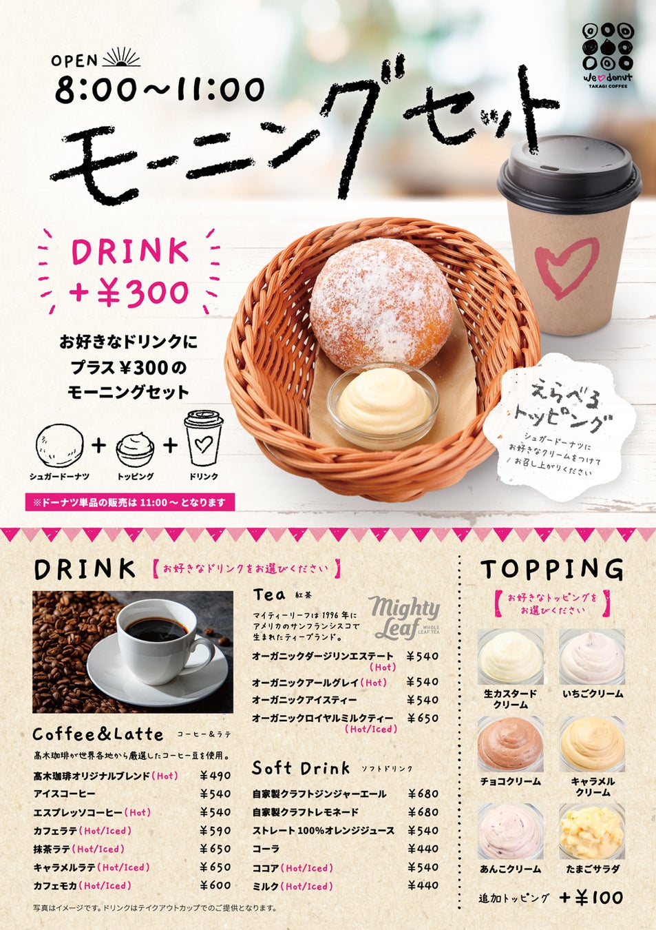 『we♡donut×TAKAGI COFFEE』メニュー一例