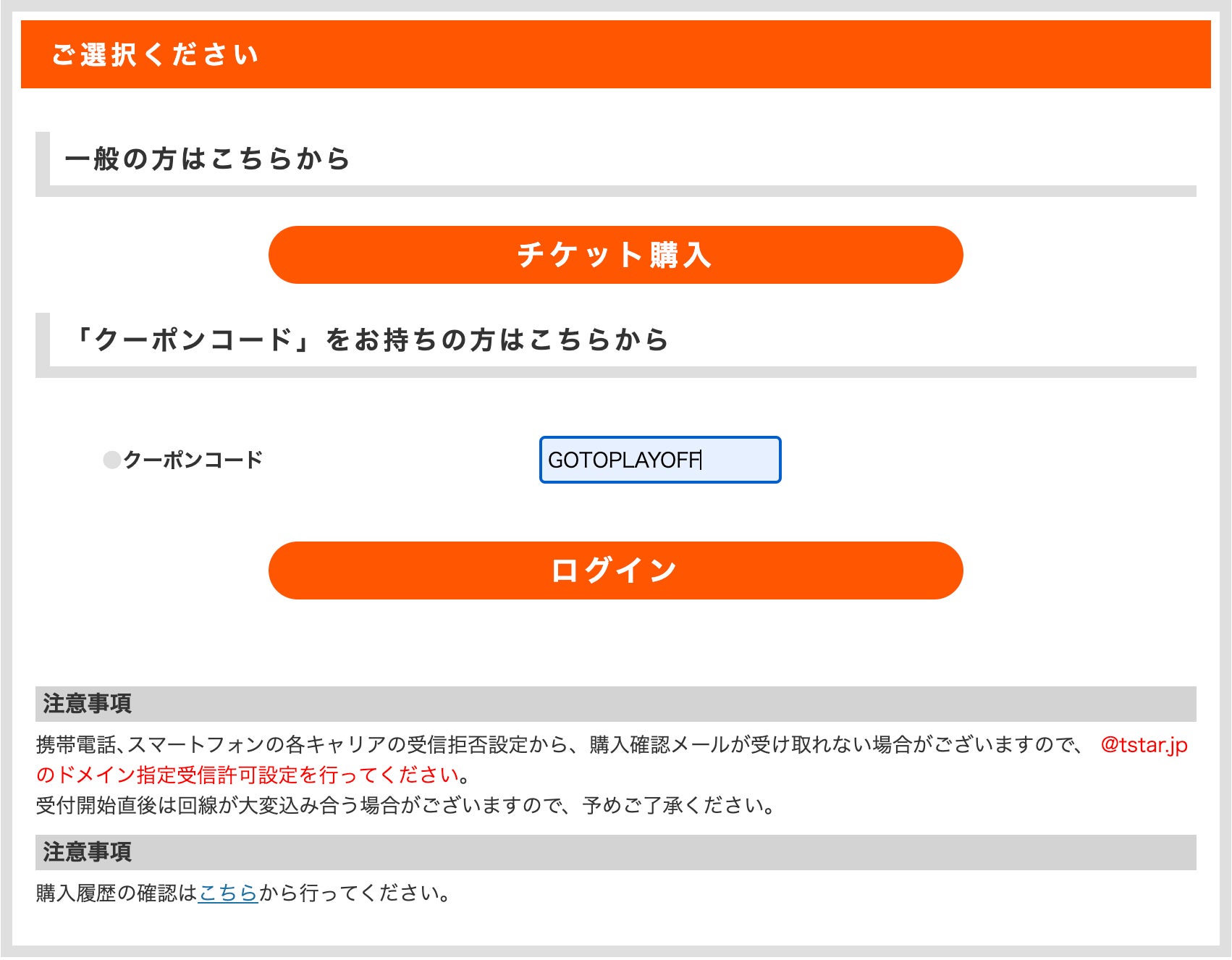 ・購入方法: クーポンコード「GOTOPLAYOFF」を購入画面にてご入力してください。