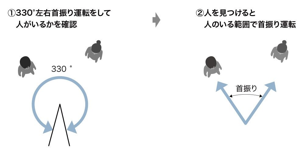「ひとセンサー」*1が認識した両端にいる人の間を首振り運転するため、「首振り運転をすると人のいないところにも送風されてしまい、効率的に涼めない」というお悩みを解決し、無駄のない送風が可能です。