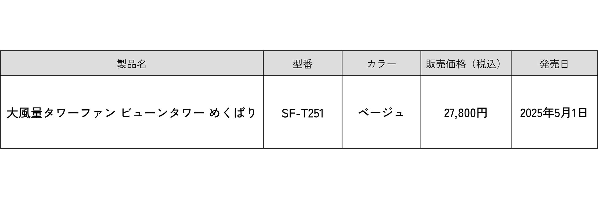 シロカ株式会社(東京都・千代田区)は、「大風量タワーファン ビューンタワー」に新たな機能を追加した新モデル「大風量タワーファン ビューンタワー めくばり」が“アタラシイものや体験の応援購入サービス”「Makuake(マクアケ)」にて販売開始約5分で目標金額を達成し好評いただいたことを受け、2025年5月1日より一般販売を開始します。