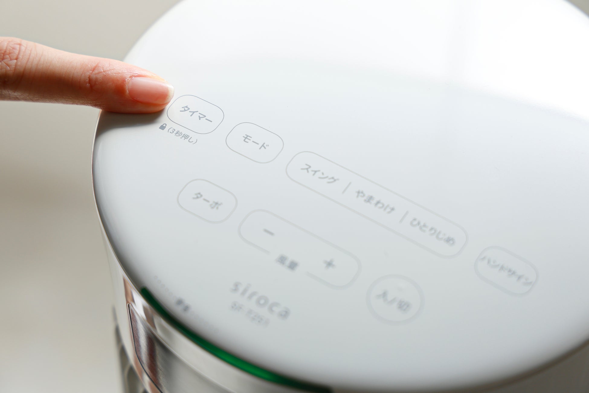 さらに、「まる・ちょき・ぱー」の3つのハンドサインで、電源 入/切や首振り あり/なし、首振り角度変更、風量変更の基本的な操作が可能。リモコンが手元になくてもその場で操作でき、便利です。