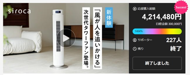 本製品は、Makuake(マクアケ)にて3月27日より予約販売を実施したところ、販売開始後わずか約5分で目標金額を達成。お客様からは、「コードレスで使いやすそう」「すっきりしたフォルムも素敵」「有線でも使えるのが良い」「静音設計や首振り角度の大きさに惹かれた」といったお声をいただきました。この好評を受け、一般販売が決定しました。