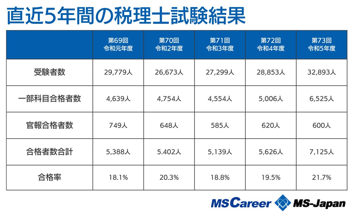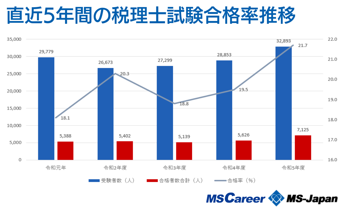令和5年度(第73回)税理士試験の合格率は21.7%!株式会社MS-Japanが「税理士試験の受験資格緩和による合格者数・合格率の変動」を調査