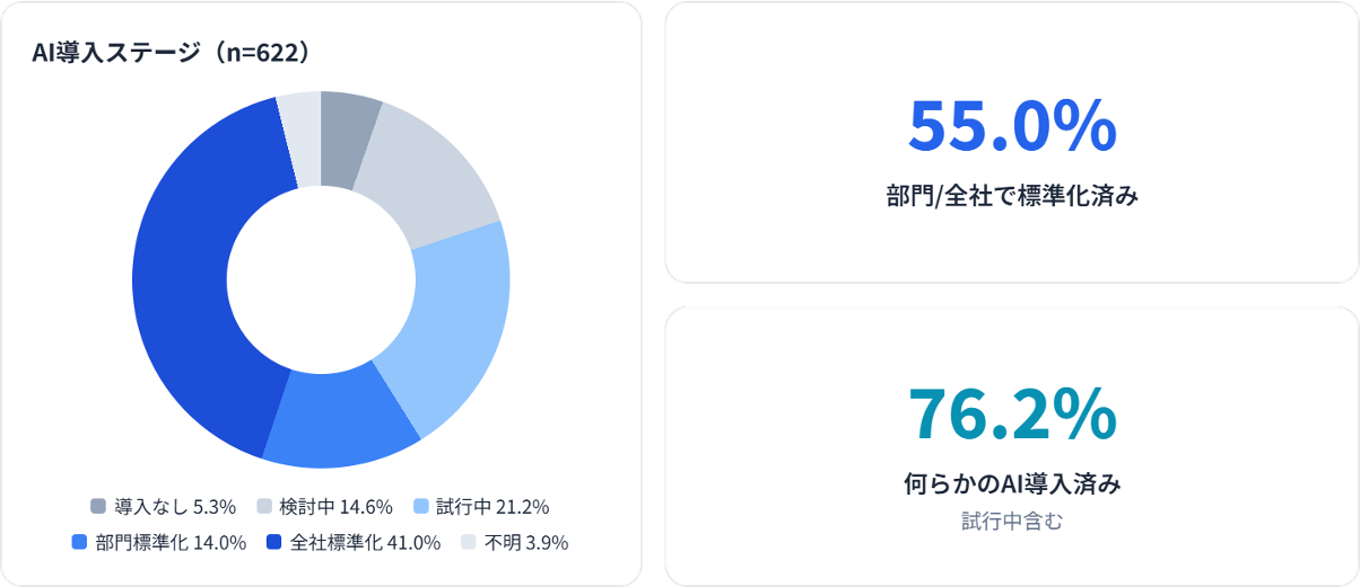 ◾️AI導入は76.2%が実施済み──どう使いこなすかのフェーズに