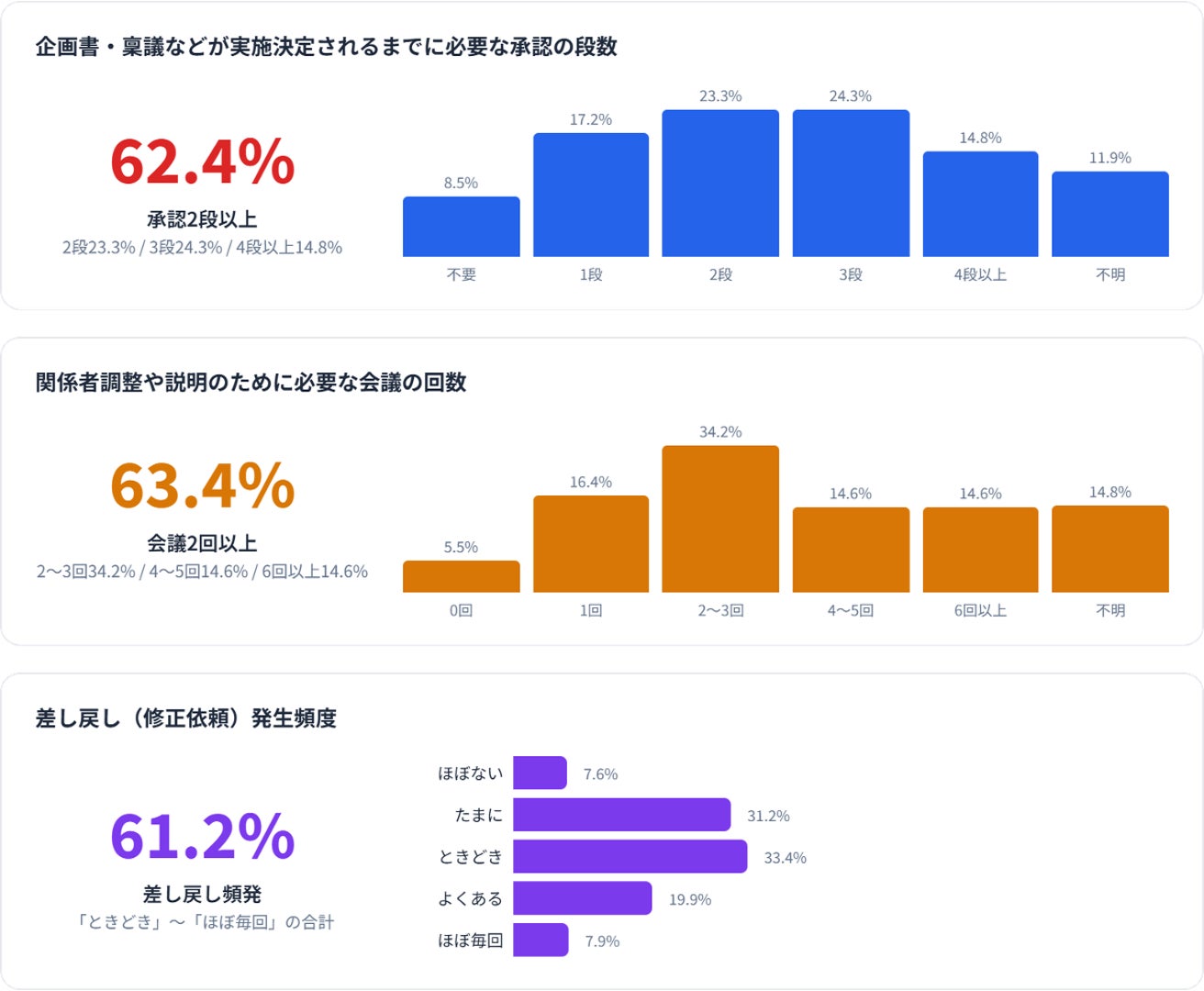 ◾️承認2段以上が6割超、差し戻しも常態化──新規事業のスピードを構造的に押し下げ