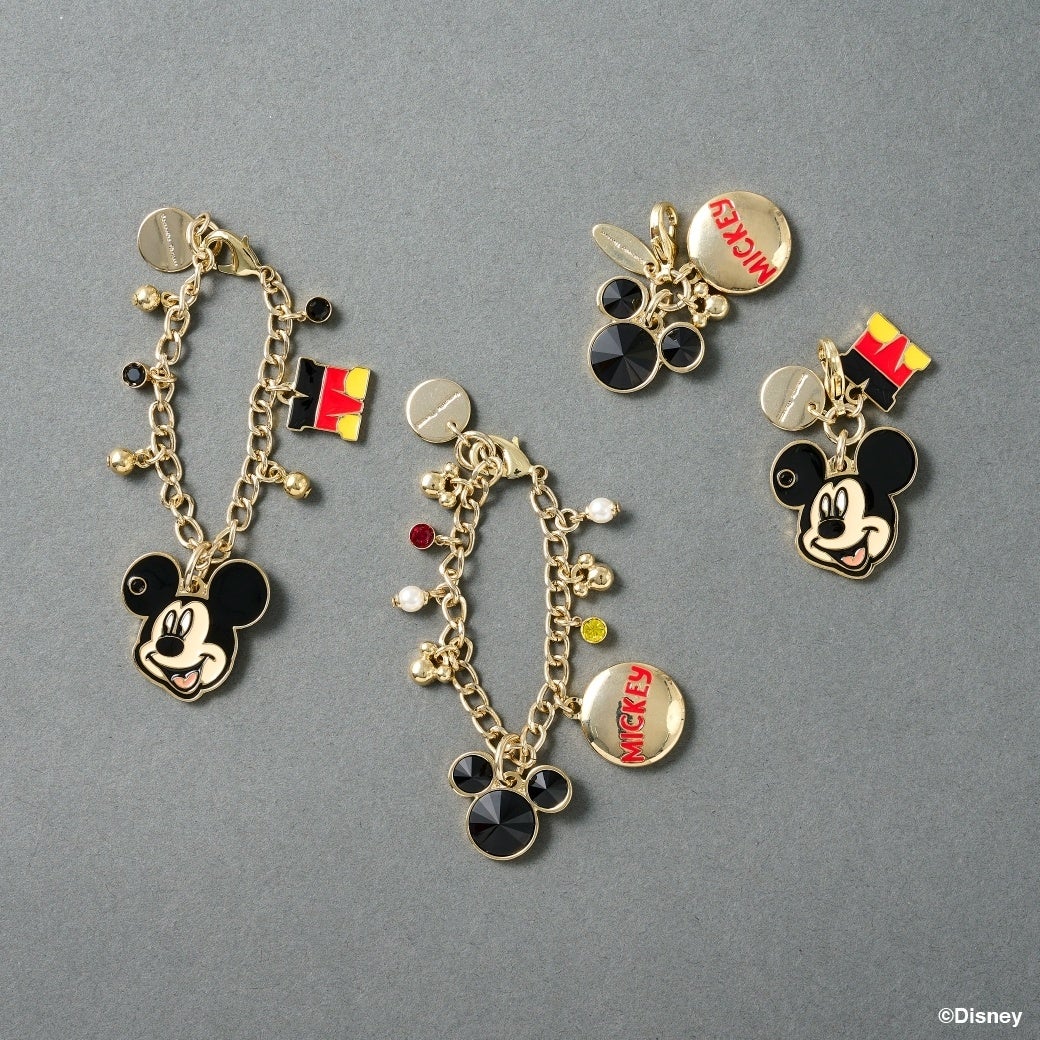 チャームのM の部分は、洋服のレッドとイエローのカラーが「ミッキー」を連想させるデザインに。