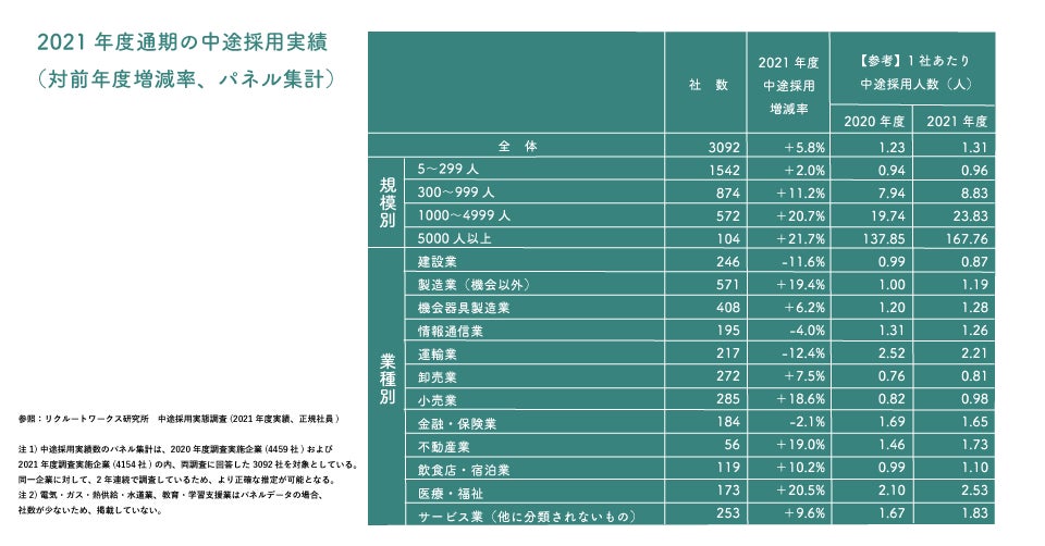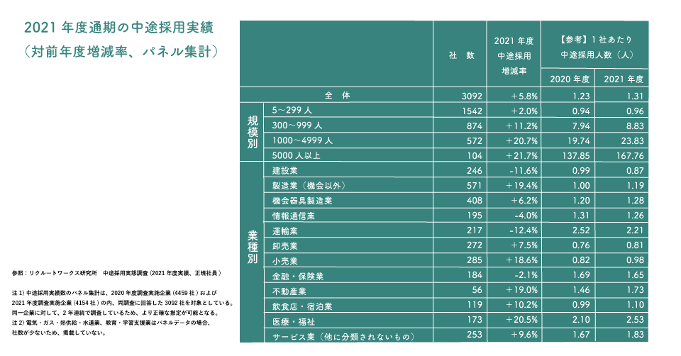 ※参照:リクルートワークス研究所 中途採用実態調査(2021年度実績、正規社員)