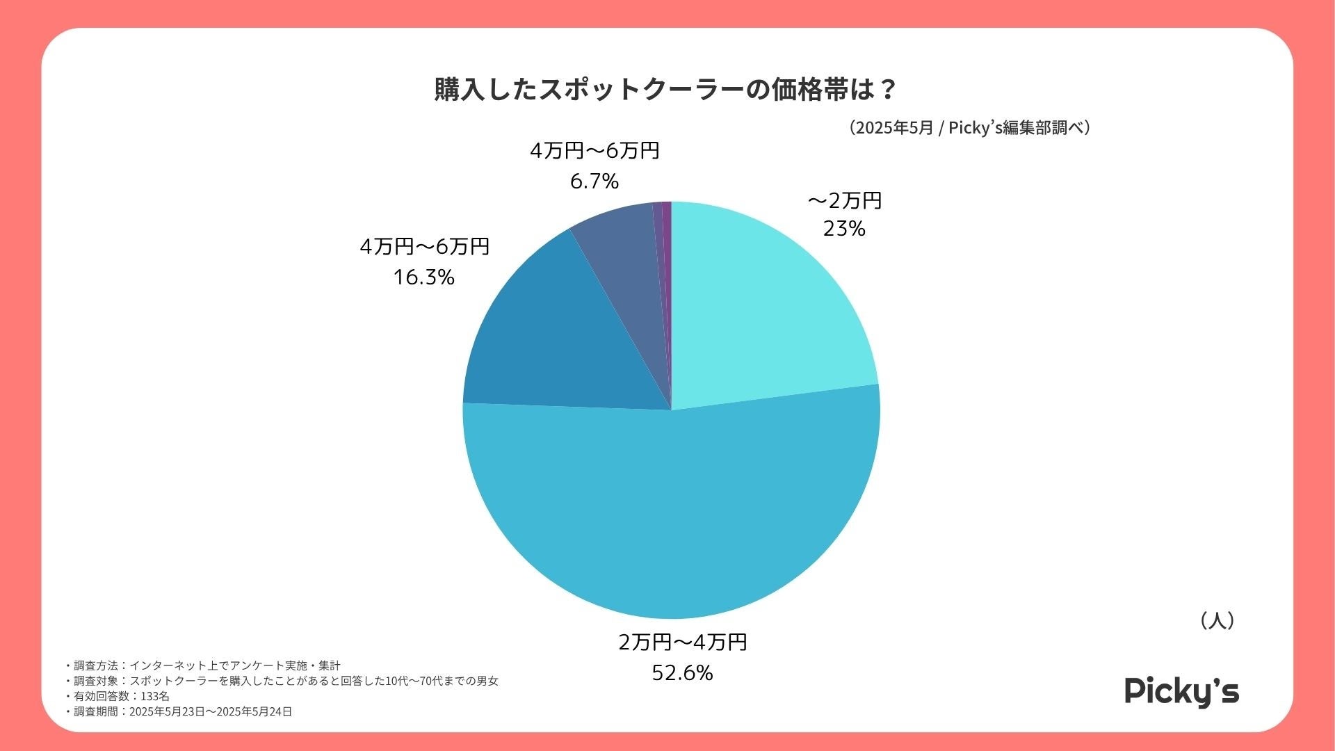 最多は「2〜4万円」、1割以下で高価格帯も!スポットクーラーの購入価格帯は?